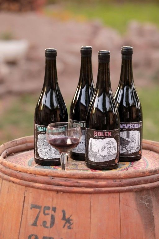 Golem, La Aparecida, Taberna Calavera y el Sueño de Chita. Estos vinos buscan resaltar al máximo la calidad de la uva e identidad del terroir. De baja intervención, pasan 8 meses en huevo de concreto y logran buena intensidad y expresión.